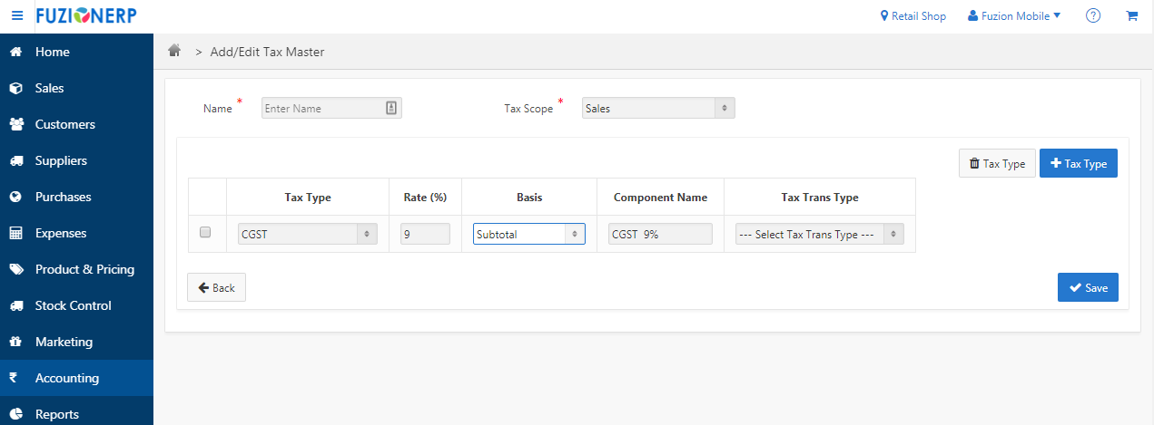 * Basic Ledger Categories and Ledger are prebuilt into the systemCreate rates for both input and output taxes.